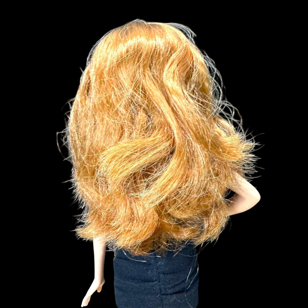 The Barbie Basics Model No. 07 Collection 001 Black Label Doll with red hair is a fashion doll from the Barbie franchise by Mattel. This doll, manufactured in 2009, features wavy hair, green eyes, and a light complexion. The set includes only the doll itself, without shoes. This Barbie is part of the Barbie Basics product line, known for its basic features and classic design, making it a versatile and timeless addition to any doll collection.