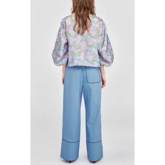 Details / Retails $209loose-fitting blouse with a keyhole and tie closure at the neck, and balloon, cropped sleeves.- Loose fit - Made from recycled polyester - This piece is from our Pre-Spring 2023 collectionMATERIAL Main Fabric 70% Recycled Polyester 30% Polyester Lining 100% PolyesterEurope (Jersey & knit) XS S M L XL Europe (Woven) 34 36 38 40 42 44 UK 8 10 12 14 16 18 US 4 6 8 10 12 14 Italy 40 42 44 46 48 50 France 36 38 40 42 44 46 Australia 8 10 12 14 16 18 Japan 7 9 11 13 15 17