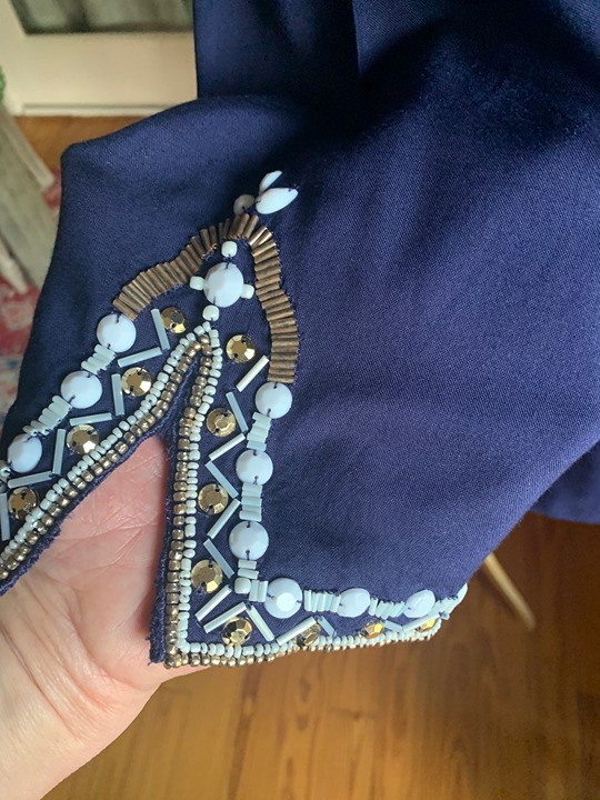 - beautiful beading all along collar and cuffs