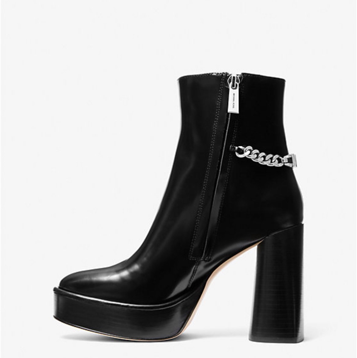 The Carlisle platform boot balances ’70s flair with modern polish. Designed to sit slightly above the ankle, this leather pair features a 4.25” stacked heel that’s balanced by a 1.25” front platform for soaring height with ease of wear. Keep the high-shine hardware in focus with mini hemlines.