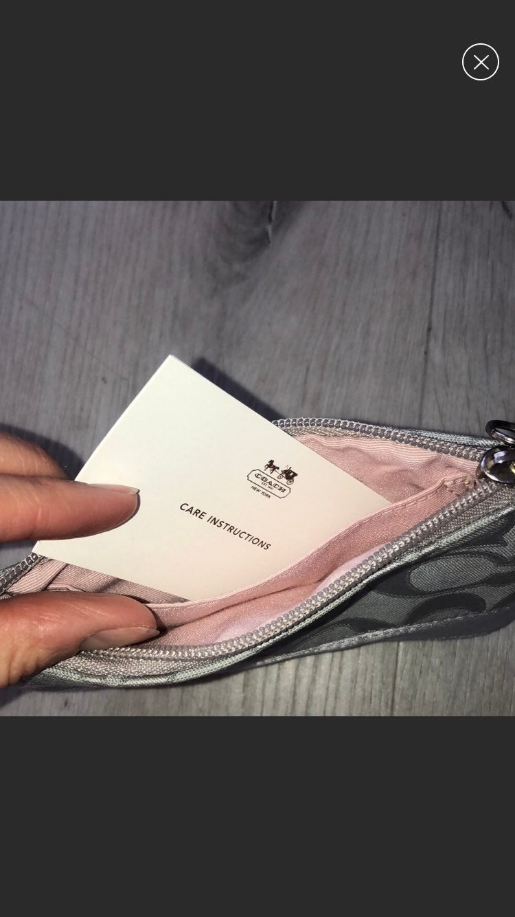 NWOT COACH Vintage Silver Corner-Zip Signature Canvas Pattern Wristlet / Wallet / Clutch Purse Handbag