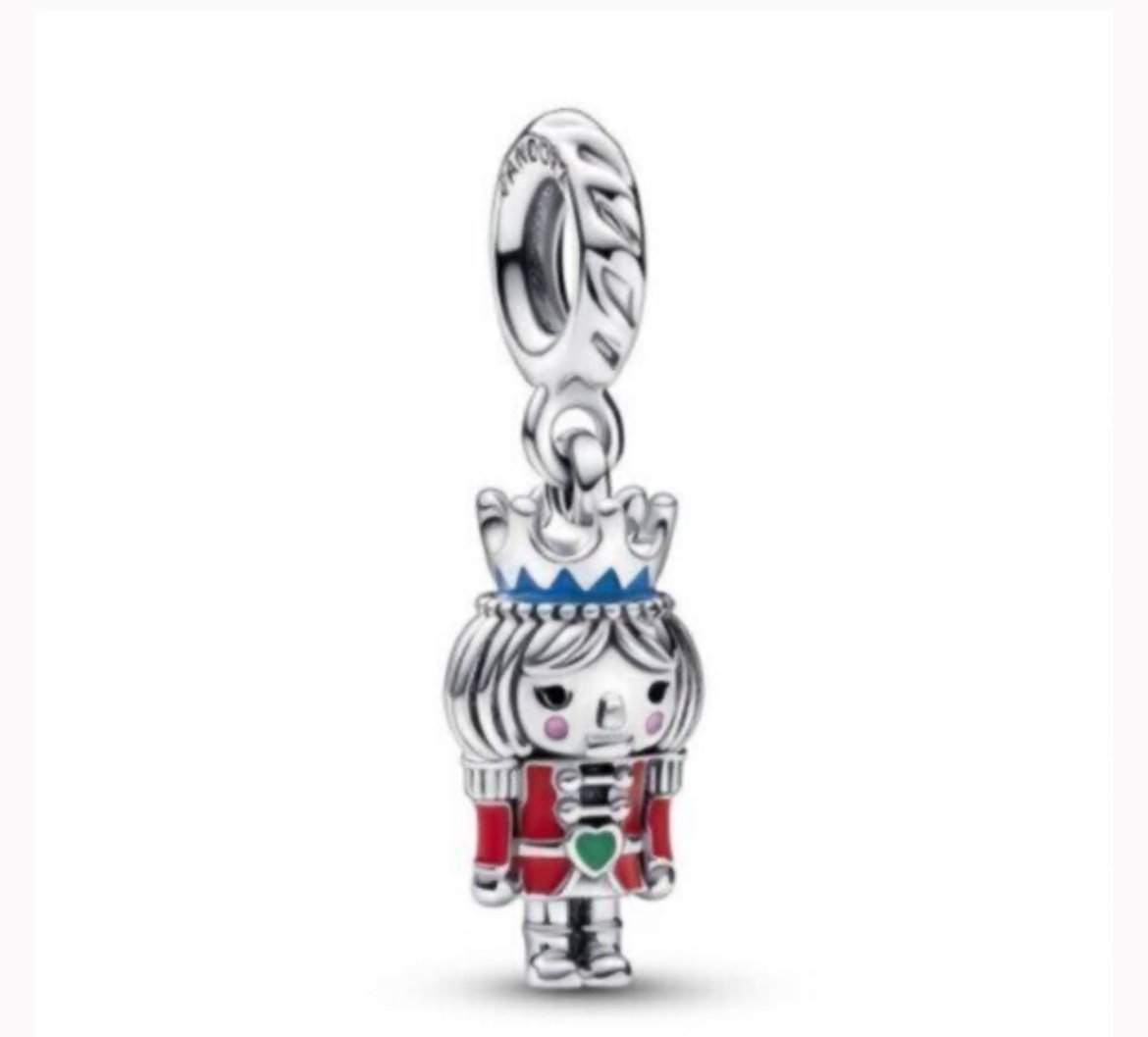 Pandora Festive Nutcracker 2022 Dangle Charm Charming nutcracker design. Features a crown and detailed outfit. Perfect for holiday jewelry. S925 Sterling Silver ALE, comes with the tag in a plastic bag