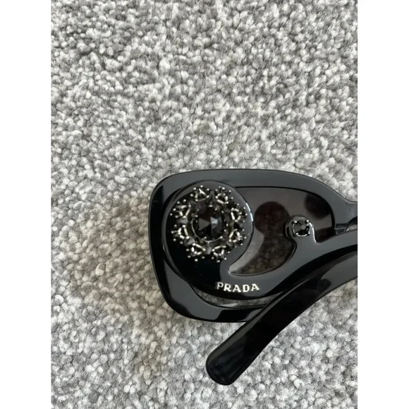 ❌OUT OF STOCK❌Gender: WomensSize: MFrame: Black with diamante templesLens: Graduated greyProducts Name: Prada Sunglasses Baroque PR33PSManufacturers code: PR33PS 1AB0A7 54Shade Station code: 34194Category: 3Frame Material: Acetate (Plastic)Lens material: PolycarbonateExcellent condition. Like new. Only used once. Lost the case, but will ship one from another brand. Not sure of the authenticity because it was a gift. Smoke free home 🚭Fast shipping 📦 (same or next day)