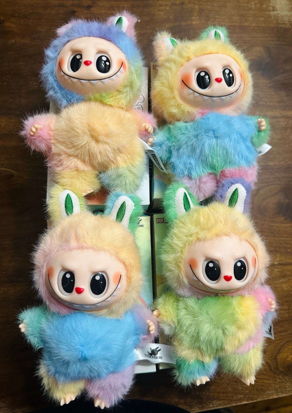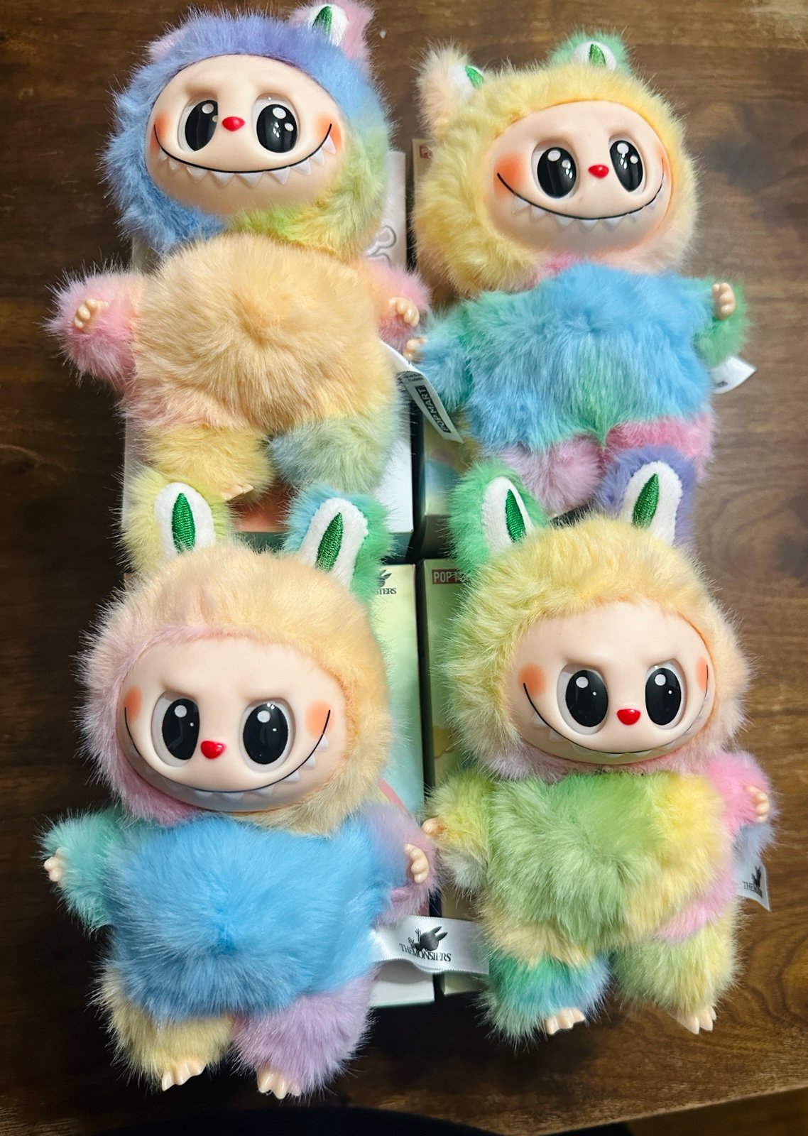 Beautiful Rainbow Labubus. New, never displayed. I just opened some for picture purposes. I have some that are sealed packaging with box. If you prefer unopened packaging just let me know or if you want one that shows in the picture. Just send me a message.