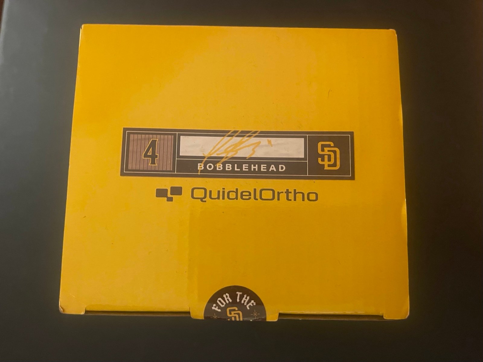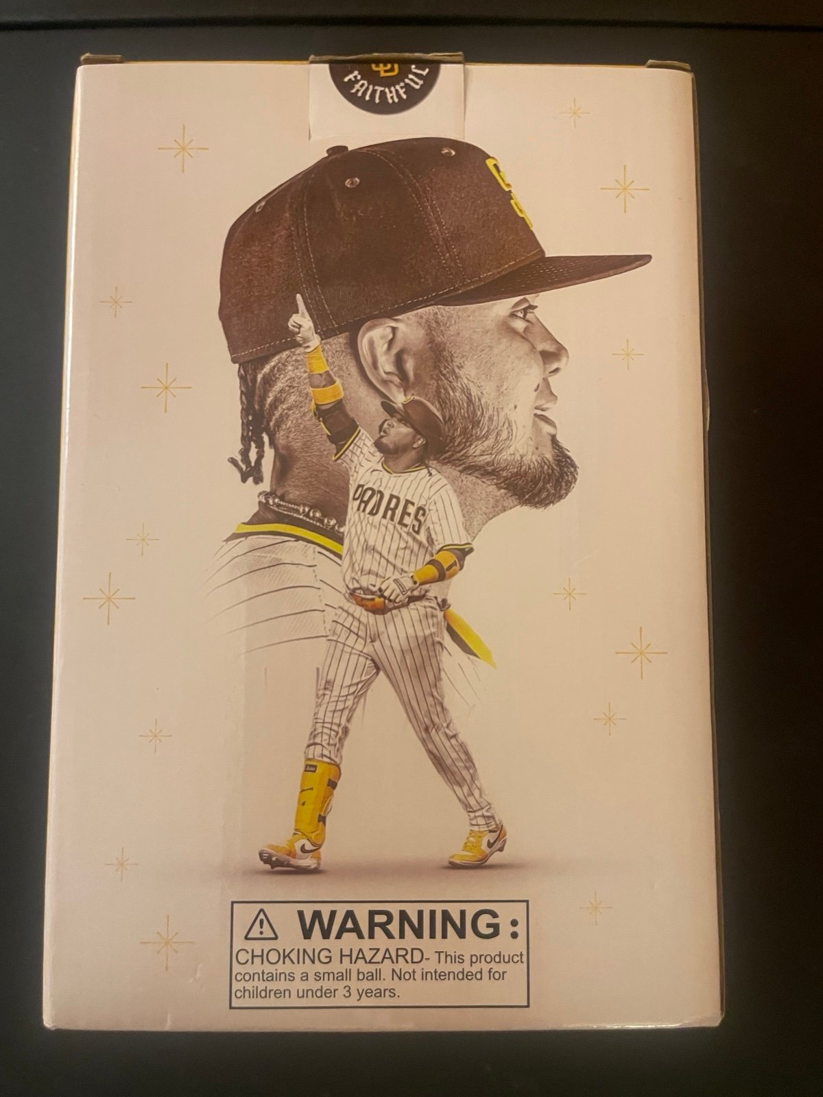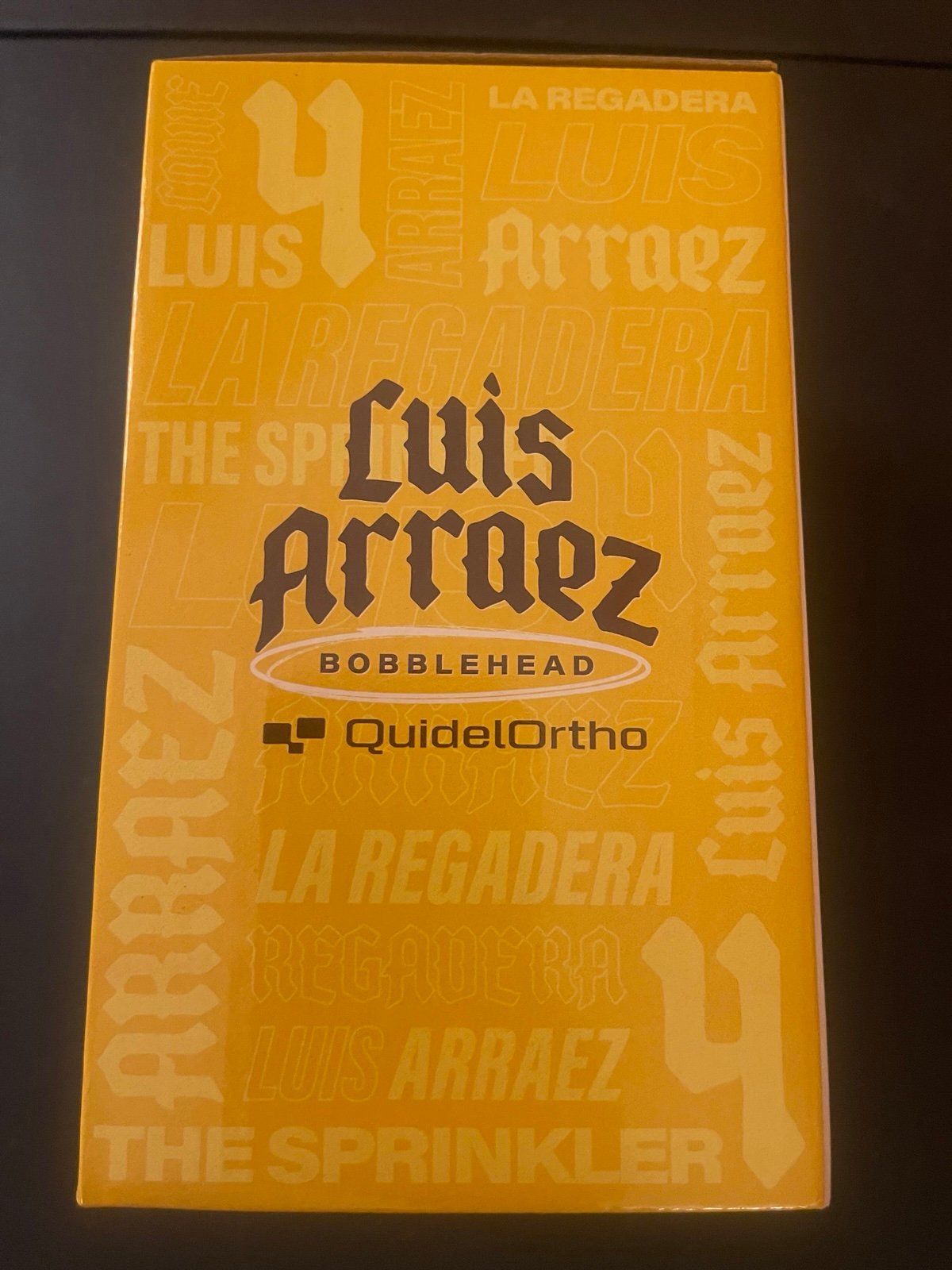 The product is a limited edition San Diego Padres Luis Arraez bobblehead, commonly referred to as "La Regadera" (The Rain Gauge). This collectible item is a unique fan apparel and souvenir for baseball enthusiasts, specifically fans of the Major League Baseball (MLB) team, San Diego Padres. The bobblehead features multi-color detailing and is one size to fit all fans of the team. Perfect for adding a touch of team spirit to any sports memorabilia collection, this bobblehead showcases the popular player in a fun and nostalgic way.
