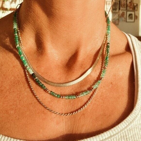 Stunning Ombre Genuine Green Onyx Beaded Necklace with Gold beads spaced throughout