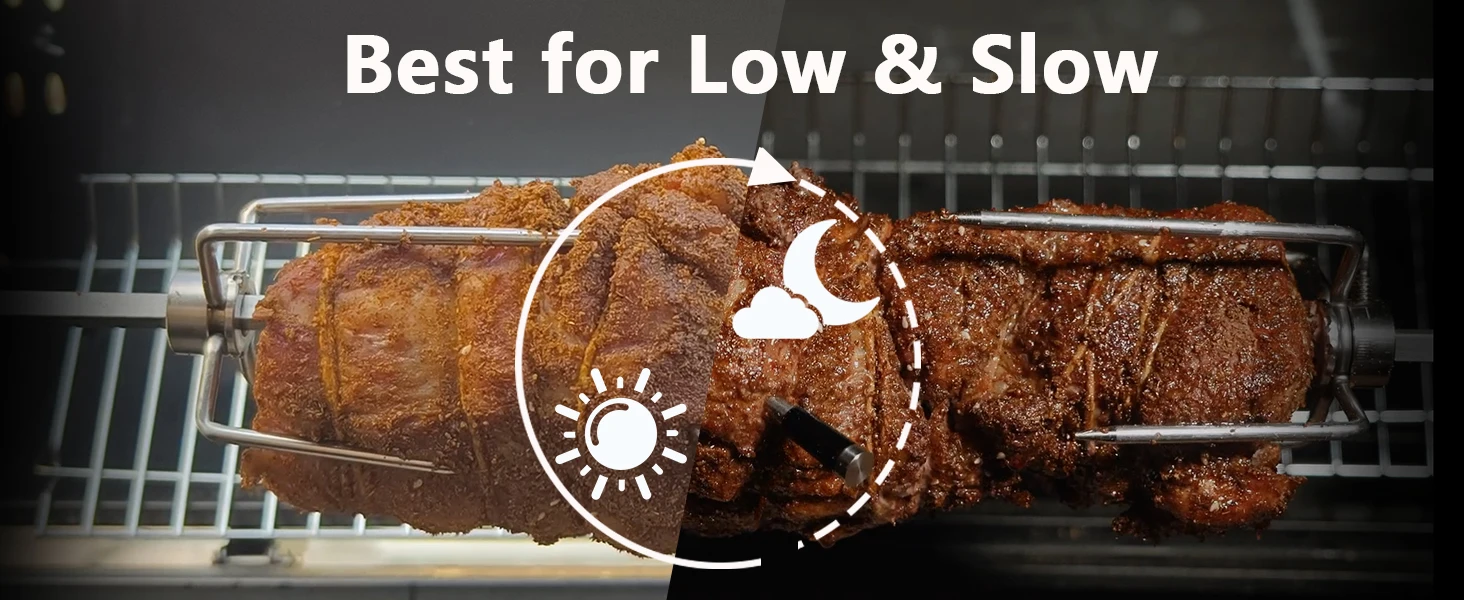 MULTIFUNCTIONAL USE: suitable for outdoor roasting of suckling pig, chicken, sheep and other large ingredients, can also be used for family gatherings, open air picnics and other occasions, practicality. The rotisserie speed and temperature can be well controlled.