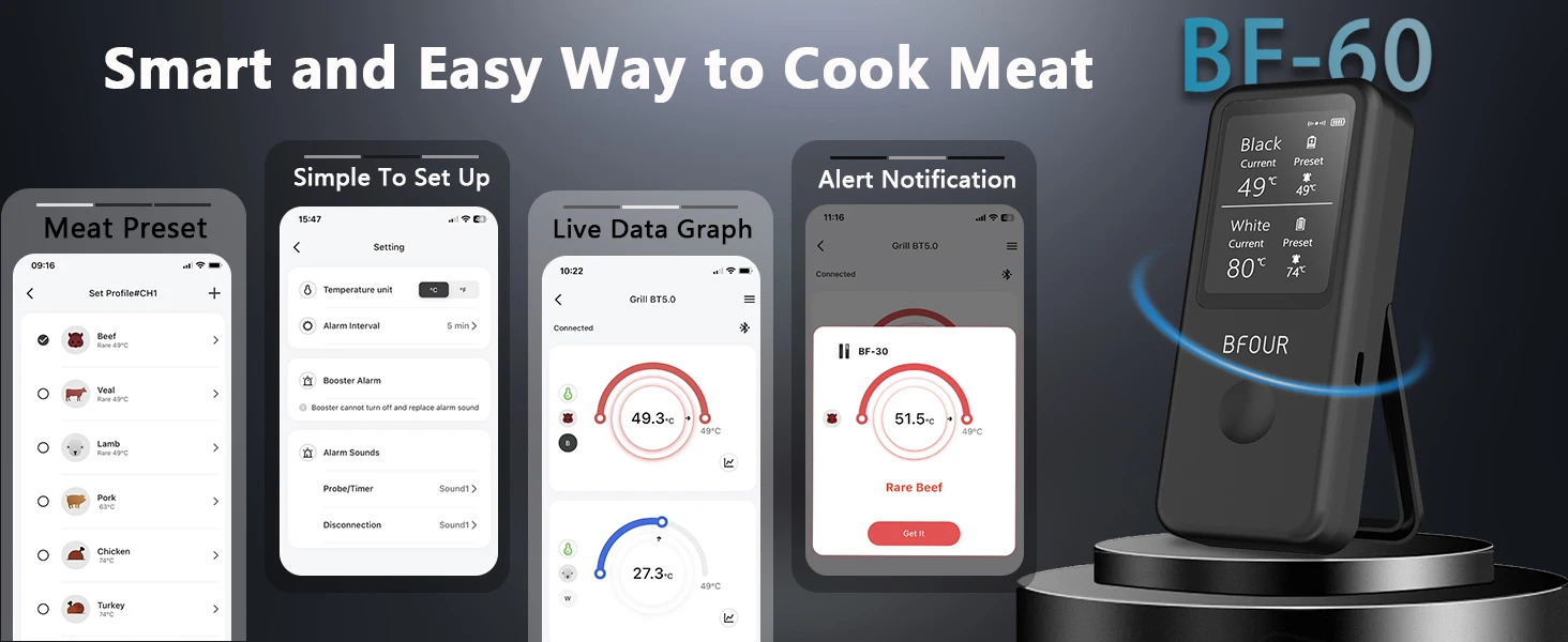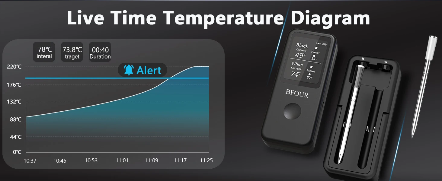 Customizable settings: Users are free to set temperature thresholds and alarms according to their cooking needs. The app offers flexible customization options to suit individual requirements.