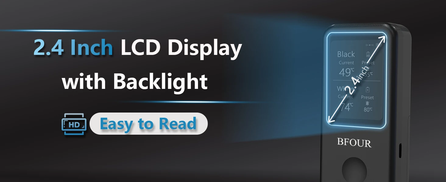 2.4-inch LCD monitorLarge Display: Provides clear temperature readings and allows users to see temperature data clearly from a distance, which is especially important for outdoor barbecues or in environments with poor visibility.